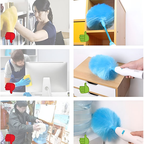 Η εύκαμπτη κεφαλή προσαρμόζεται σε οποιοδήποτε σχήμα, επιτρέποντάς σας να καθαρίζετε λεπίδες ανεμιστήρων οροφής, κορυφές ντουλαπιών, άκρες επίπλων και στενές γωνίες χωρίς κόπο. Η σκόνη κρύβεται παντού—αυτό το ξεσκονιστήρι τη βρίσκει παντού!