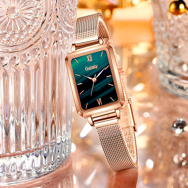 Αυτό το ρολόι έχει λαμπερό ροζ-χρυσό χρώμα και όμορφο πράσινο καντράν. Προσθέτει στυλ σε κάθε φόρεμα, τζιν ή επίσημο ένδυμα.