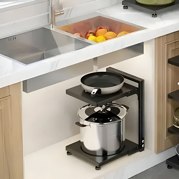 Οργανώστε την κουζίνα σας με ευκολία! Αυτή η βάση για κατσαρόλες με δύο ράφια είναι ιδανική για κάθε ντουλάπι και ιδανική λύση για μια τακτοποιημένη κουζίνα.