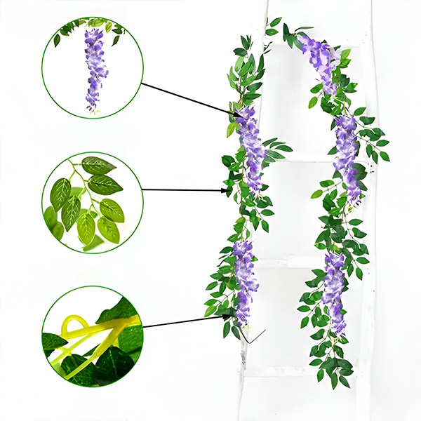 Κουραστήκατε να συντηρείτε αληθινά λουλούδια που μαραίνονται και ξεθωριάζουν; Το WISBLOOM είναι μια απομίμηση λουλουδιών βιστέριας με φύλλα κισσού που φέρνουν μια πινελιά φυσικής ομορφιάς στο χώρο σας χωρίς την ταλαιπωρία. Αυτά τα ζωντανά, αληθοφανή κρεμαστά λουλούδια παραμένουν φρέσκα και πολύχρωμα χρόνο με το χρόνο, εξασφαλίζοντας ότι ο κήπος ή το σπίτι σας θα είναι πάντα εντυπωσιακό.