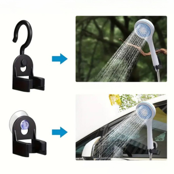Η βεντούζα ασφαλίζει την κεφαλή σε οποιαδήποτε επίπεδη επιφάνεια. Ο γάντζος την ανεβάζει ψηλότερα όταν τη χρειάζεστε πάνω από το κεφάλι σας. Με βάρος 600 g και 1,5 m σωλήνα, χωράει σε κάθε τσάντα, φορτίζει στη διαδρομή και λειτουργεί είτε ξεπλένετε λάσπη από μπότες είτε κάνετε μπάνιο τον σκύλο μετά από μεγάλη βόλτα.