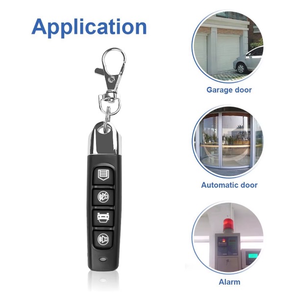 - Αντιγραφή: Κρατήστε το αρχικό τηλεχειριστήριο στο αριστερό χέρι, τον αντιγραφέα μας στο δεξί και κρατήστε τα δύο τηλεχειριστήρια όσο το δυνατόν πιο κοντά· πατήστε ταυτόχρονα τα πρώτα κουμπιά των δύο τηλεχειριστηρίων· σε περίπου 2 δευτερόλεπτα, η λυχνία LED θα αναβοσβήσει γρήγορα 2 φορές· μετά από ένα δευτερόλεπτο, η ενδεικτική λυχνία αναβοσβήνει συνεχώς, τότε αφήστε τα δάχτυλά σας· και στη συνέχεια πατήστε το πλήκτρο, μετά την επιτυχή σύζευξη, η λυχνία παραμένει αναμμένη, πράγμα που σημαίνει ότι ο κωδικός του πρώτου πλήκτρου στο αρχικό τηλεχειριστήριο έχει αντιγραφεί στο άλλο τηλεχειριστήριο· η ίδια μέθοδος μπορεί να χρησιμοποιηθεί διαδοχικά για το δεύτερο πλήκτρο, το τρίτο πλήκτρο… Εάν η αντιγραφή είναι επιτυχής, η λειτουργία του τηλεχειριστηρίου είναι η ίδια με το αρχικό.