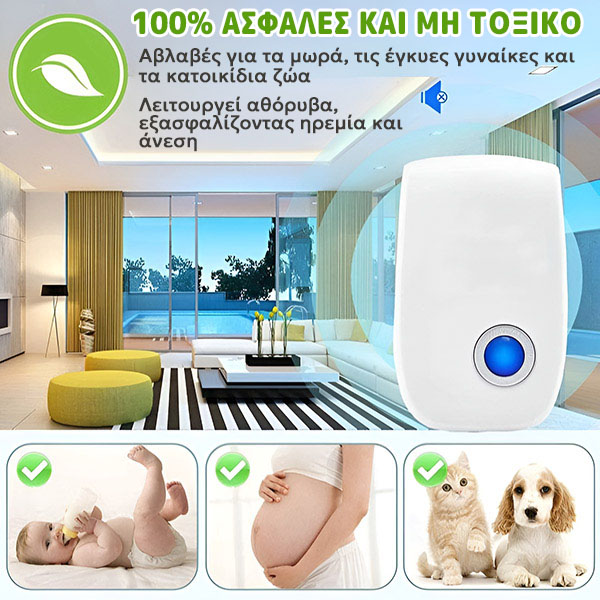 📡 Ευρεία κάλυψη: Μία συσκευή καλύπτει αποτελεσματικά έως 100m², εξασφαλίζοντας πλήρη προστασία του σπιτιού.