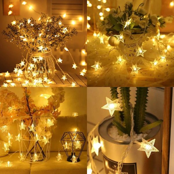 Προσθέστε μια πινελιά ρομαντισμού και γοητείας στις βραδιές σας με αυτά τα όμορφα, μαγευτικά Αστέρια φωτάκια. Ιδανικά για να τα κρεμάσετε γύρω από το δωμάτιο την Ημέρα του Αγίου Βαλεντίνου, ρομαντικές βραδιές δείπνου ή άνετες βραδιές ταινιών, αυτά τα φώτα ρίχνουν μια ζεστή, φιλόξενη λάμψη που ανεβάζει τη διάθεση. Τα απαλά αστέρια δημιουργούν μια οικεία ατμόσφαιρα, κάνοντας κάθε στιγμή να μοιάζει ξεχωριστή και μαγική.