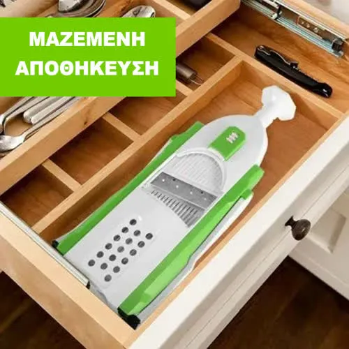 Ο πτυσσόμενος σχεδιασμός εξοικονομεί χώρο, καθιστώντας το ιδανικό για κάθε μέγεθος κουζίνας. Σας επιτρέπει επίσης να προετοιμάζετε γρήγορα και με ασφάλεια φρούτα και λαχανικά σε διάφορα σχήματα!