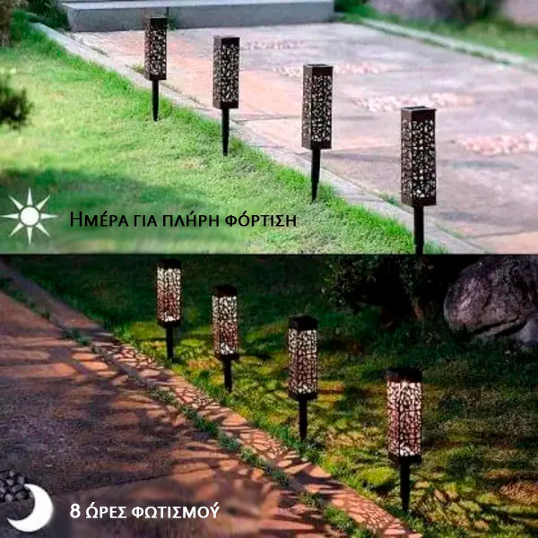 Το ηλιακό φως λειτουργεί αυτόματα φορτίζοντας με ηλιακή ενέργεια κατά τη διάρκεια της ημέρας και λάμπει για περισσότερες από 8 ώρες τη νύχτα!